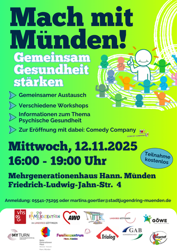 Am Freitag, den 23. Mai 2025, lädt das Mehrgenerationenhaus Hann. Münden herzlich zum diesjährigen Tag der Nachbarschaft ein. Ab 15:00 Uhr erwartet Besucher*innen jeden Alters ein abwechslungsreiches Programm in freundlicher Atmosphäre.
